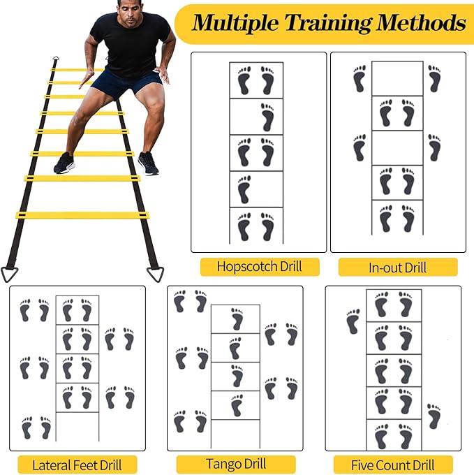 - 【Maximize Athletic Performance】- With this agility ladder set, you’ll be able to maximize your acceleration, rhythm, balance, leg strength, overall body control, and even reaction time!