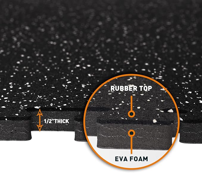 - 👍 【Upgrade TWO Layers Design】 Are you worried that the Foam Mat isn’t Tough enough for longer use but the Rubber Tiles are too hard? Our 2in1 Rubber Top EVA Foam Exercise Gym Mats design to helps you solve the problem. The Textured Rubber top layer with high-density EVA foam bottom layer creatively combines the non-slip toughness surface and perfect shock-absorbent.