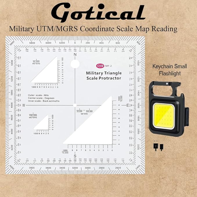 - For use with UTM, MGRS, USNG or other metric based coordinate systems. For use on maps with scales of: 1:25000 1:50000 1:100000 1:250000. Compass Rose in both Degrees and Mils.
