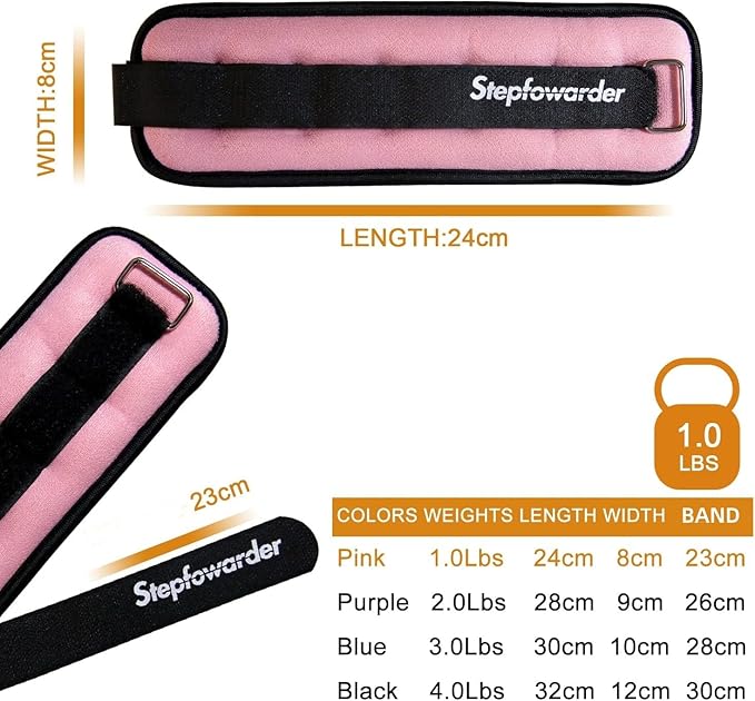 - šŖ Stepfowarder WEIGHTS: 2Ć1,0Lbs -pink, 2Ć2,0 Lbs-purple, 2Ć3,0 Lbs-blue, 2Ć4,0 Lbs-black, 4 weights & colors provide choices that suits your requirements, Please choose 1,0 Lbs for children, 1.0-2,0 Lbs for women and all weights for men.