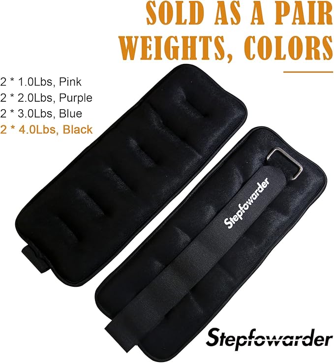 - šŖ Stepfowarder WEIGHTS: 2Ć1,0Lbs -pink, 2Ć2,0 Lbs-purple, 2Ć3,0 Lbs-blue, 2Ć4,0 Lbs-black, 4 weights & colors provide choices that suits your requirements, Please choose 1,0 Lbs for children, 1.0-2,0 Lbs for women and all weights for men.