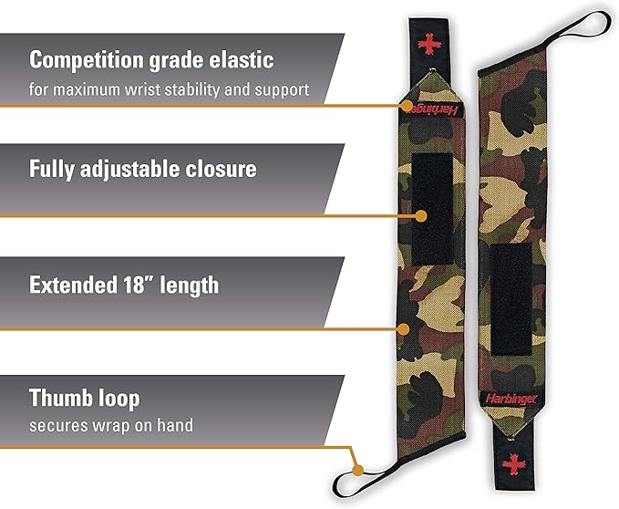 - Extended 18-inch length offers strong support to the wrists, and thumb loop secures the wrist wrap to the hand