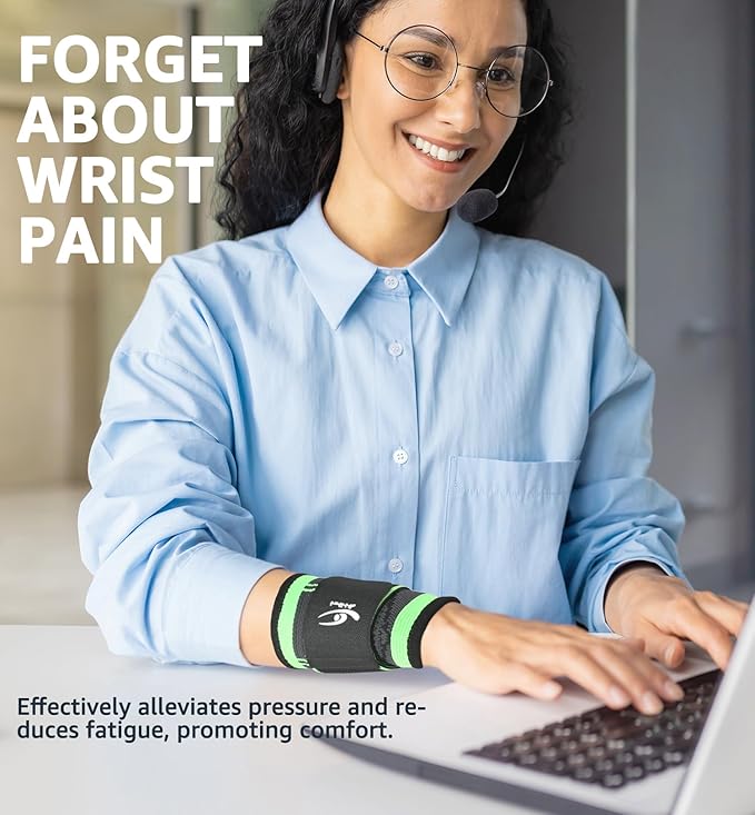 HiRui Wrist Brace Wrist Wraps Compression Wrist Strap, Wrist Support for Work Fitness Weightlifting Sprains Tendonitis, Carpal Tunnel Arthritis, Pain Relief, Adjustable Wristbands 2 PACK (Green, M)