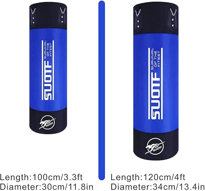 - Protective layer, SUOTF hanging punching bag has foam interlayer to slow down the impact of training and protect the body joints. Hit and kick mma boxing bag can improve the strength of arms and legs and release the stress of life.