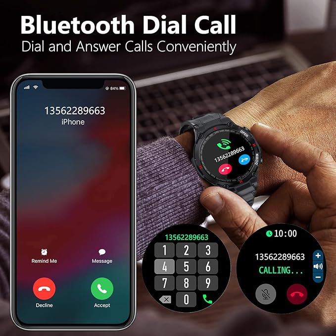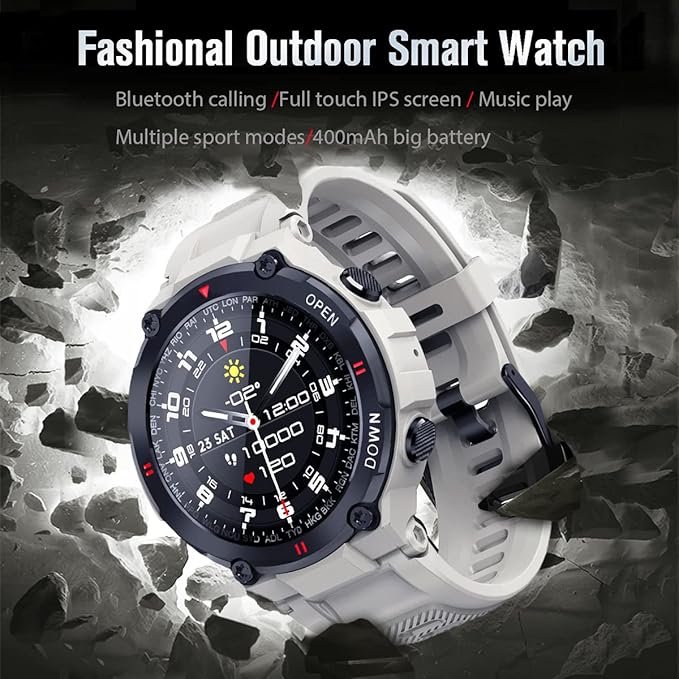 1.28" IPS Tactical Smart Watch for Men Activity Fitness Tracker with 400mAh Large Battery Outdoor Bluetooth Call Heart Rate Sleep Monitor Pedometer IP68 Waterproof Sport Watch for Android iOS