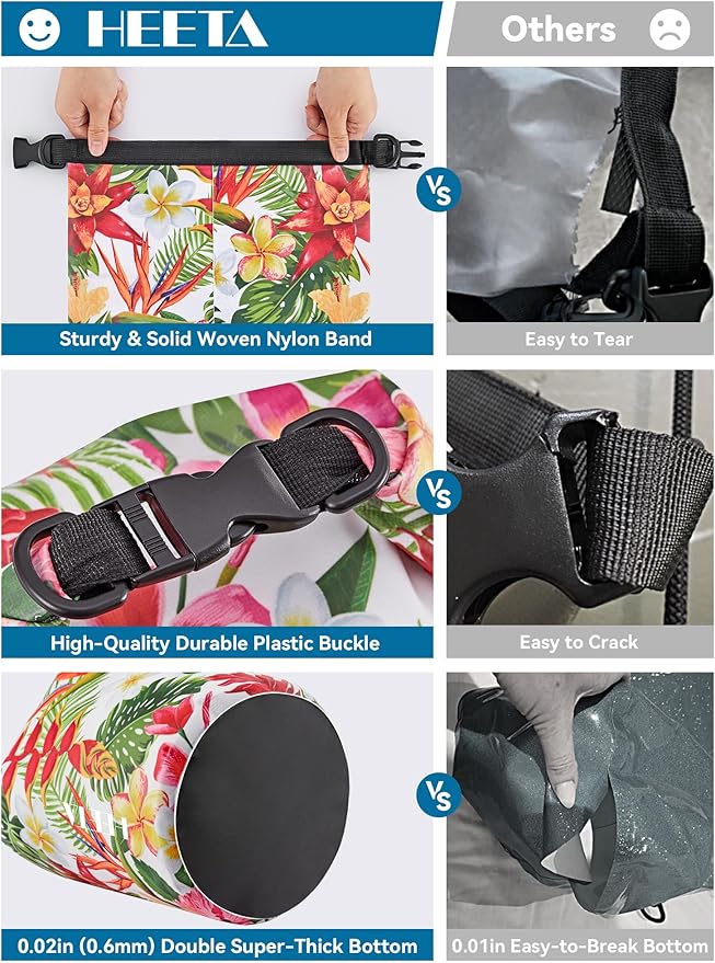- Durable - Made of 0.02 in (0.5 mm) thick upgraded wear-resistant PVC material, it's suitable for all kinds of outdoor activities. Waterproof bag is well adapted to various weather and environment