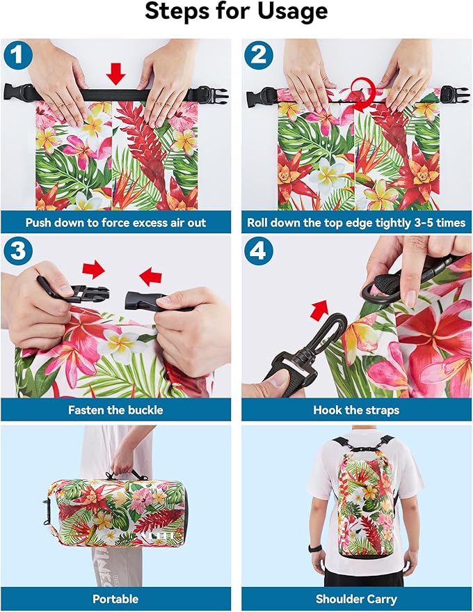 - Multifunctional - Equipped with adjustable shoulder straps for shoulder carrying and backpack, our dry bag is very convenient for different occasions like boating, rafting, kayaking, hiking, camping, fishing, mountaineering, etc. The lightweight dry bag won't weigh down your arms or shoulders