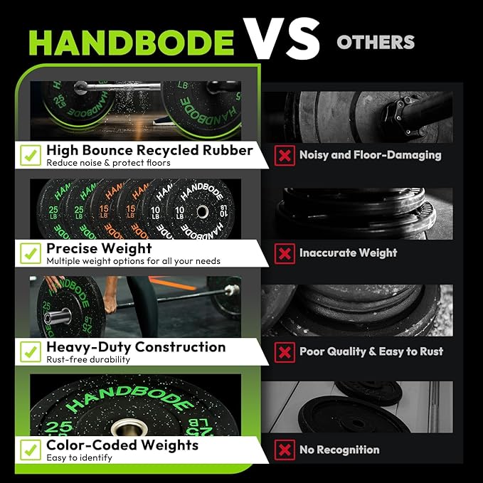 - Color-coded flecks help you easily identify the proper weight plate, Excellent choice for all types of strength training and weight lifting movements such as cleans, jerks, snatches, etc.