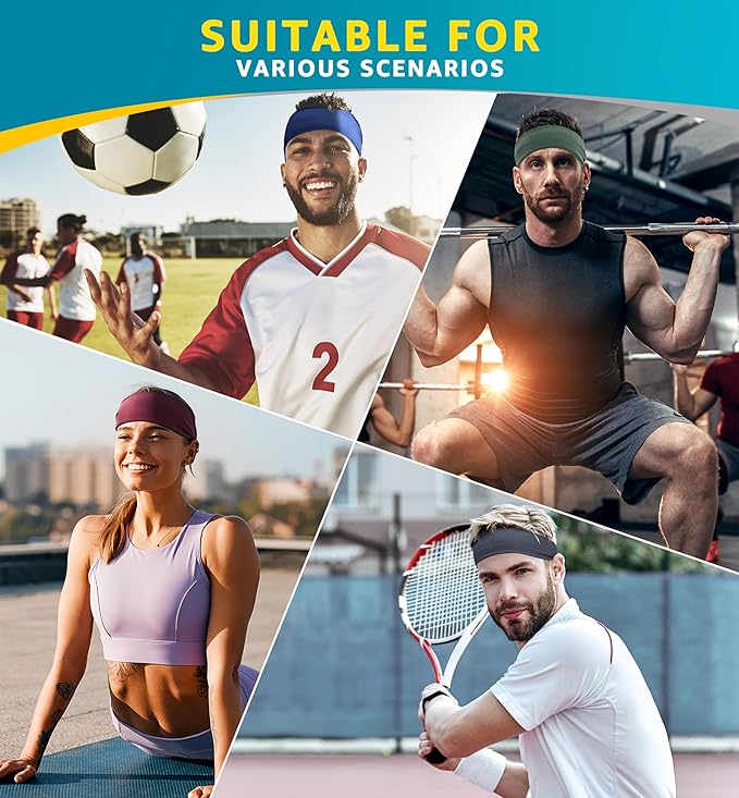 • Advanced Sweat-Wicking Technology: These sports headbands are made with advanced sweat-wicking materials, which effectively absorbs and evaporates sweat. This keeps you dry and comfortable during intense workouts, making them perfect for activities like running, basketball, cycling, and gym workouts.
