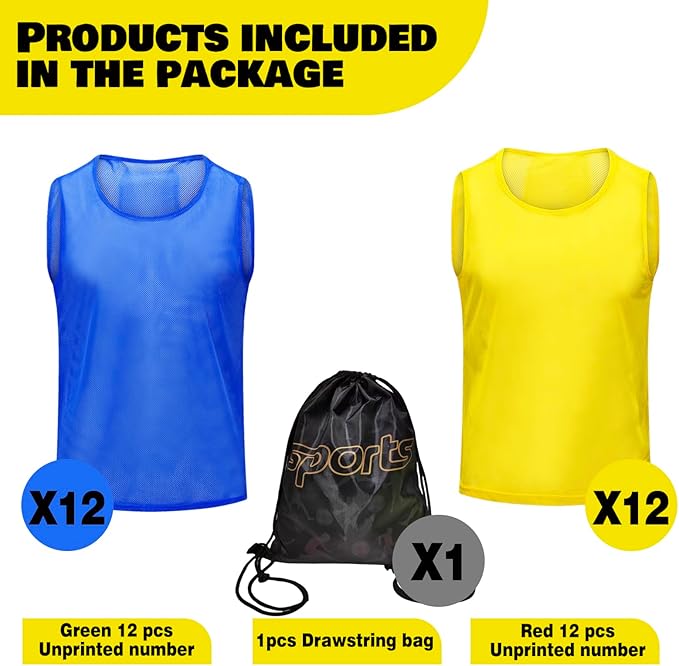 - 【Package and Services】--- Each of package comes with a beautiful drawstring bag for easy storage and carrying with you sports pinnies and Provide high-quality services.