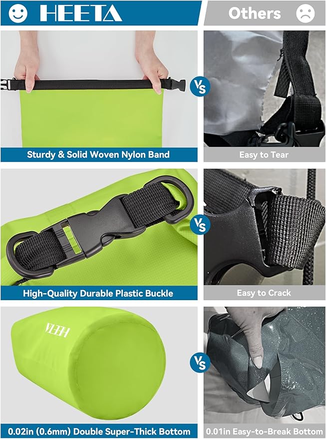 HEETA Waterproof Dry Bag for Women Men(Upgraded Version) 5L/10L/20L/30L/40L Roll Top Lightweight Dry Storage Bag Backpack with Emergency Whistle for Travel, Swimming, Boating, Kayaking, Camping, Beach