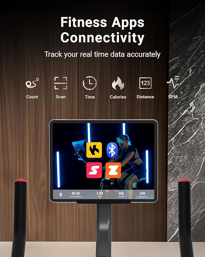 - Exercise Bike Bluetooth: With a built-in sensor,this exercise bikes for home support multiple fitness app,which can track your real-time sports data,such as time,speed,RPM,distance and calorie. These fitness apps offer a variety of exercise courses, enabling you to personalize your workout plan and add entertainment to your fitness routine