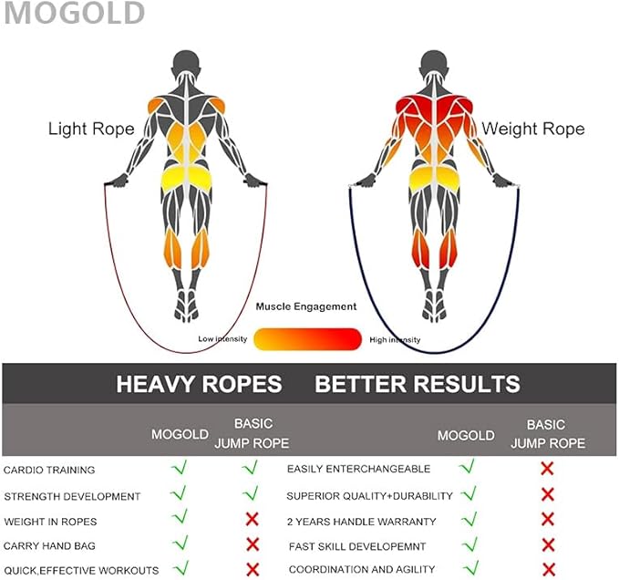 - Heavy Duty Jump Rope Design: These jump ropes feature 1/2 lb weighted rope(full set weight 1lb) for an intense cardio and strength training workout(pay attention:it's not fast clip interchangebale design,can not match 4mm,6mm,8mm,14mm rope cables we sell in our shop)