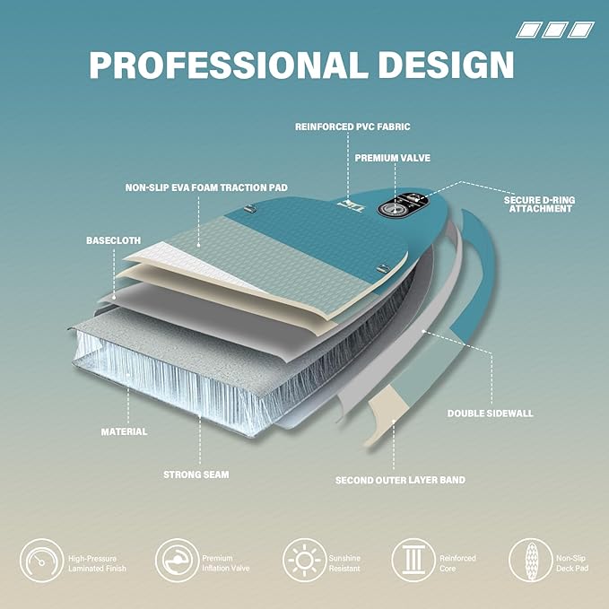 - Exceptional Durability:Our stand up paddle boards are made of high quality PVC material for a durable product. The paddle board measures 10'×33"×6", can hold up to 253 pounds, has a non-slip surface for superior stability and balance on the water.Whether you're a beginner or an experienced enthusiast, you can enjoy a safe and fun experience on the water.