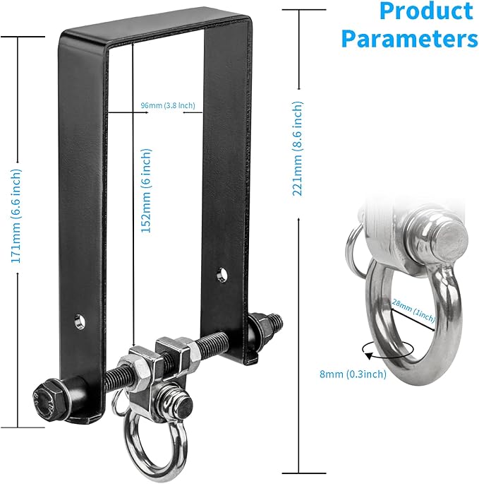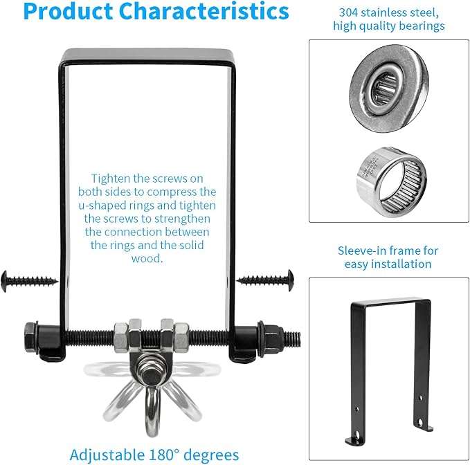 - HIGH QUALITY: The heavy duty swing hanger is made of durable carbon steel material, the interface of the bracket is not formed by welding, so it is not easy to break or deform.The ring part is made of stainless steel