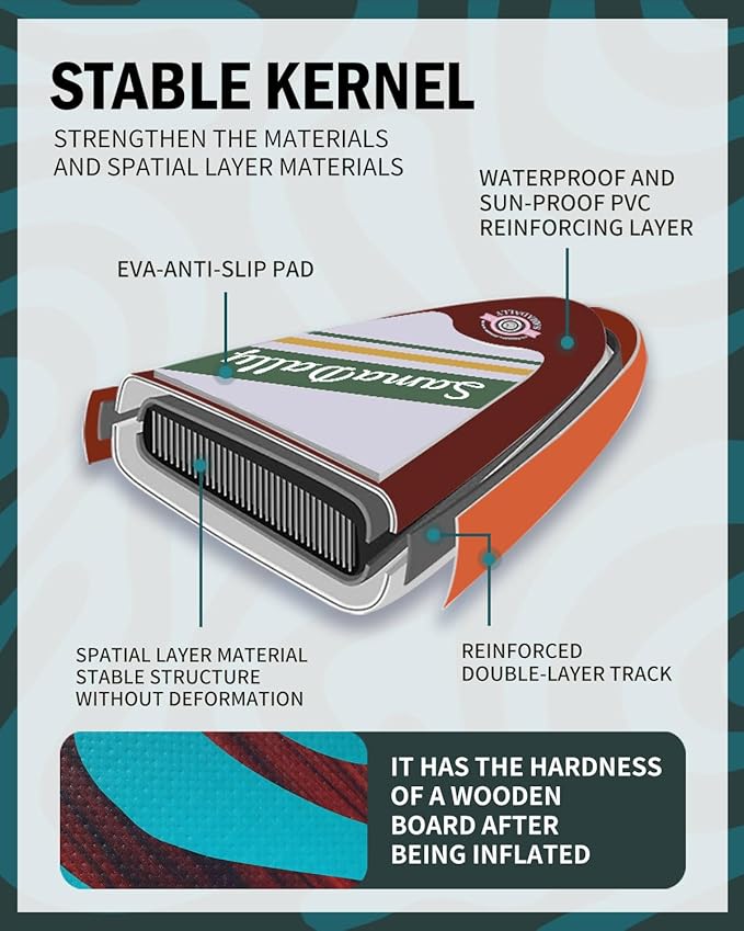 - Spacious & Enjoyable: SamaDally Candy Star series inflatable stand-up paddle boards are 1 to 2 inches wider than other similar products. 34in paddle surface is extremely spacious. Both beginners and paddleboards enthusiasts can find their own water - based fun on this SUP and enjoy a relaxing time.