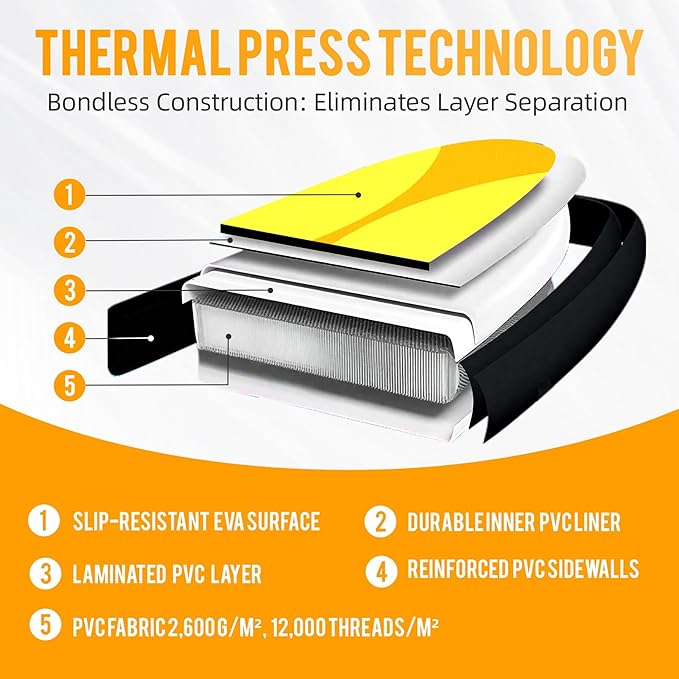 - 【Smart & Convenient Adventure Ready】Easy Inflation & Multi-Functional D-Rings: Effortlessly inflate with the included pump (works with electric pumps) thanks to the user-friendly valve and pressure gauge (ideal 12-15 PSI). Secure gear easily with multiple stainless steel D-rings, ready for attaching a kayak seat (sold separately) for fishing or securing coolers/bags for touring and camping.