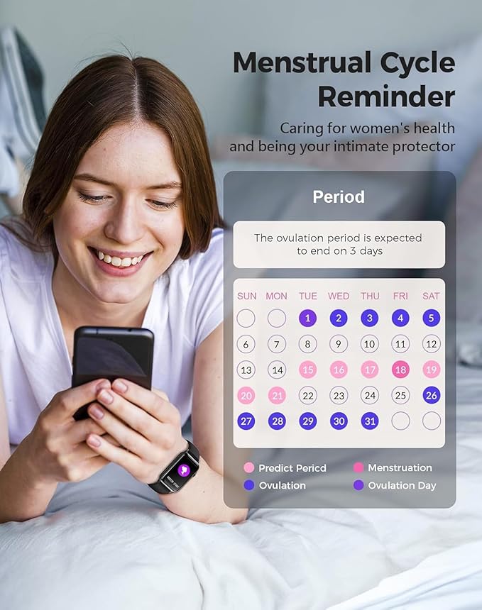 - Mutiple Notifications and Reminders: With this smart watch fitness trackers for iPhone and android phones, you can receive notifications for incoming calls and read messages directly on your wrist even without taking out your phone. The smart fitness watches for women and men provide you with multiple health-related reminders including drinking water reminder, sedentary reminder, and women's menstrual period reminder, helping you to develop a healthier life style