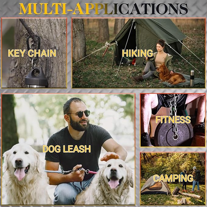 - Carabiner Clips Heavy Duty: The heavy-duty carabiner is suitable for outdoor fishing, hiking, camping, traveling, connecting water bottles, bird cages, or as hangers, pet leash clips, etc. Note: Not for use in personnel protection or climbing equipment