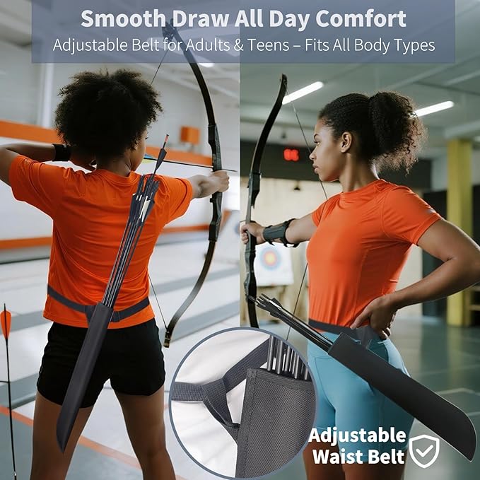 - 【LIGHTWEIGHT TRAVEL ARCHERY QUIVER】Perfect for archers on the go, this ultra-lightweight arrow case stores easily in a suitcase or carry bag without losing functionality. It offers quick and convenient arrow access, making it a practical quiver for target practice, horseback shooting, or outdoor hunting. Designed to be ambidextrous, it works smoothly for both left- and right-handed users.