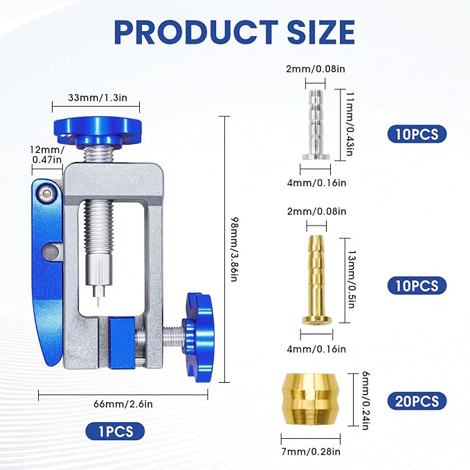 - Fitting Insert Tool with Brass Olives: Effortlessly installs brake line fittings with rounded auxiliary positioning. Works with standard oil needles and five-wire bodies, making it a must-have for bicycle hydraulic brake repairs