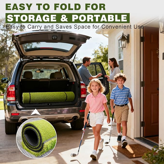 - 【Indoor & Outdoor All-Weather Use】Made with UV-resistant, weather-proof PP turf, this golf mat resists flattening, fraying, and weather damage. Practice year-round in your garage, backyard, or simulator without worrying about rain or sun.