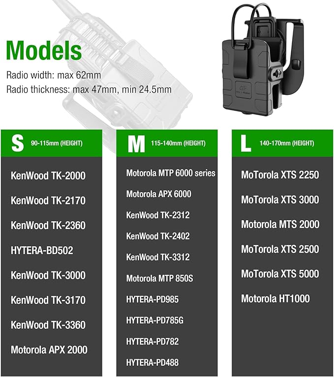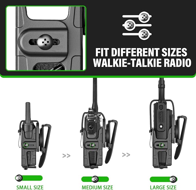 - 【Adjustable Design】Adjusting the walkie talkie holster's screws to make it fit different types of walkie-talkie perfectly.
