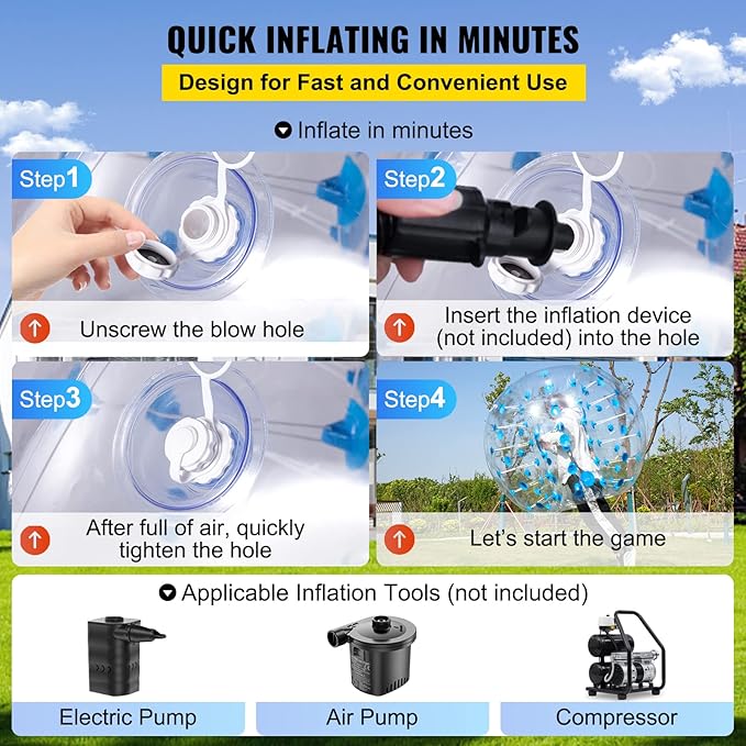 - Hassle-free Inflating: Inflatable bubble bumper balls, can be easily inflated by electric pump or air pump in minutes.(Pump is not included). Ready to enjoy the fun the day you receive our ball.