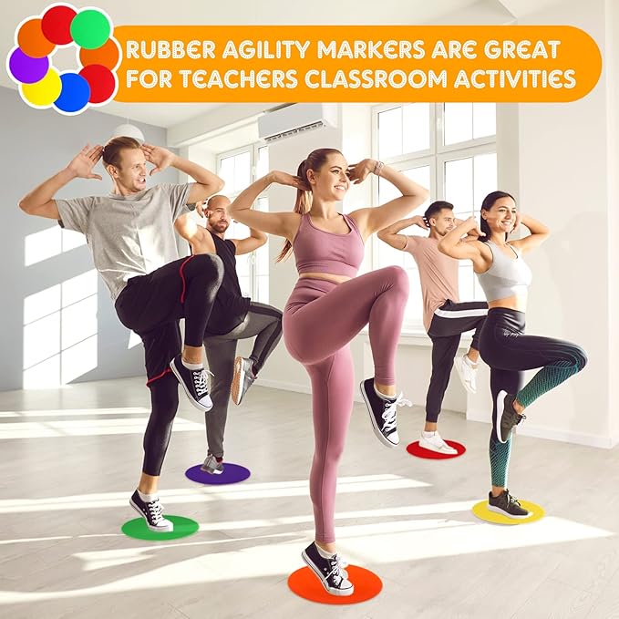 - Rainbow Colors Spot Markers: the sports floor dots have 6 bright colors, including red, orange, yellow, green, blue and purple, easy to spot, which make it easy to create custom agility courses, gym classes, or anything else your workouts require; You can quickly set up an obstacle course, boundary, or even use the dot markers for group exercises