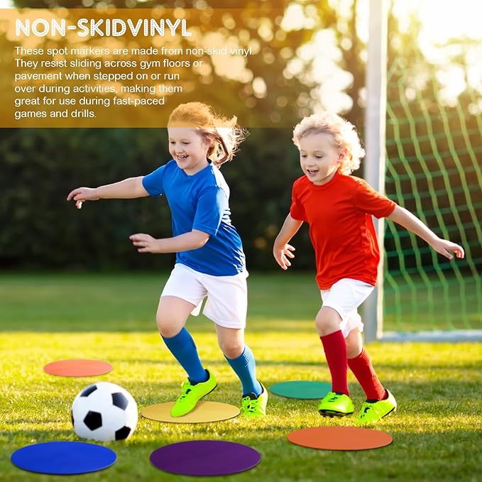 - Reliable Floor Spots: our spot markers for gym floor are made of quality poly vinyl material, soft and sturdy, tear resistant and waterproof, can withstand heavy use over time; And our poly dots are flatter, can provide exceptional reliability, so you can experience the ease and efficiency they bring to your training routines