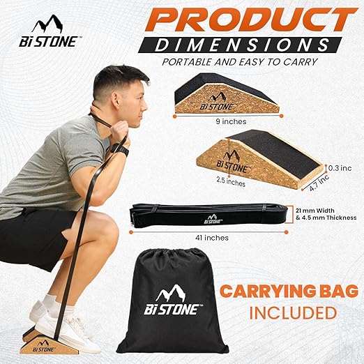 - š¶āāļøšš¶š“šµššš²š¶š“šµš š®š»š± š£š¼šæšš®šÆš¹š²: Bi Stone calf stretcher slant board weighs 1.6 lbs. and 9.1ā x 4.7ā x 2.6ā in size holds up to 1400 lbs. making them perfect for everywhere use. Despite the lightweight nature of this heel raiser for squats, it provides robust support & comfort to your workout.