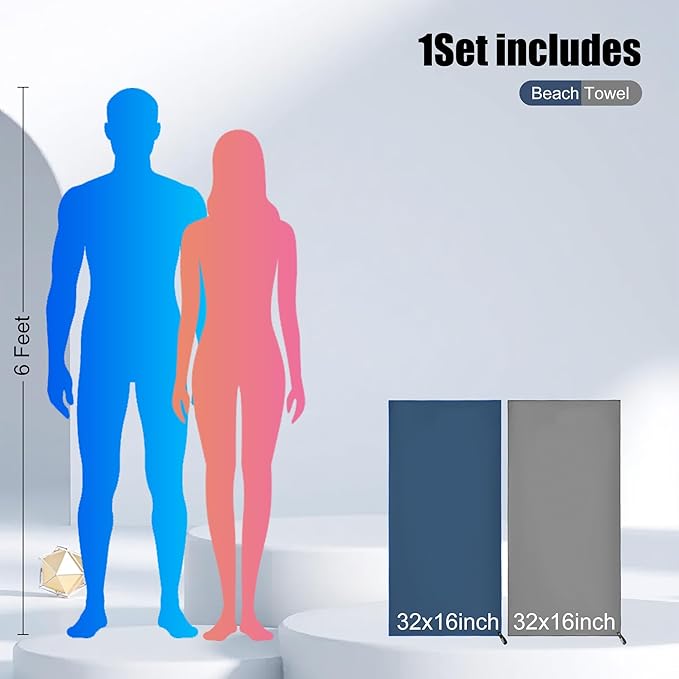 - ULTRA-LIGHT & CONVENIENT: Each set boasts two ultra-lightweight travel towels, measuring 63"x32" and 32"x16". Use them as swim towels, gym towels, or small beach towels on your next vacation.