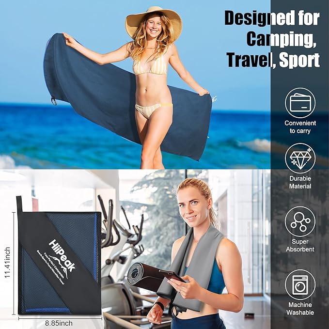 - SUPERIOR ABSORPTION & QUICK DRYING: Hiipeak's microfiber towels stand out from the rest. They're ultra-soft and soak up moisture in a flash. Our travel beach towels are crafted with cutting-edge technology that combines superior absorption with rapid drying capabilities. These towels dry three to six times faster than traditional towels and can hold several times their weight in water.