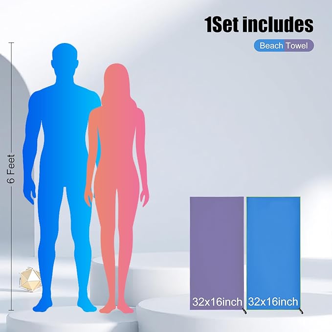 - ULTRA-LIGHT & CONVENIENT: Each set boasts two ultra-lightweight travel towels, measuring 63"x32" and 32"x16". Use them as swim towels, gym towels, or small beach towels on your next vacation.