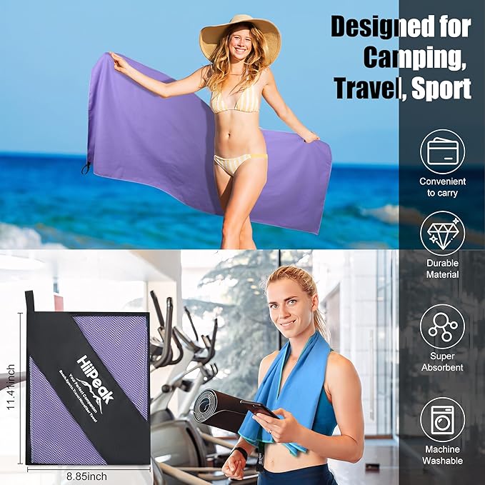 - ODOR-FREE & IDEAL GIFTS: The Hiipeak microfiber camping towel set comes with a breathable storage bag and carabiner for easy packing and carrying. No chemicals or weird smells here. The stylish and unique designs of our oversized beach towels add a vibrant touch to your beach trips. They're perfect gifts for family, friends, and loved ones, ideal for sports, travel, camping, hiking, yoga, the beach, the gym, and fitness.