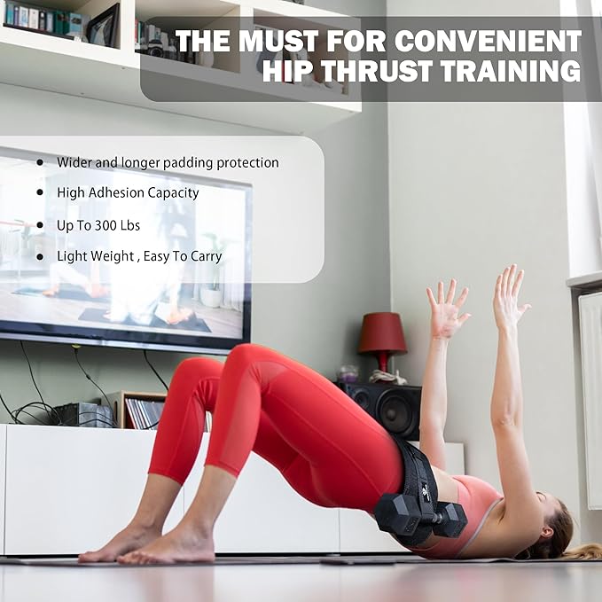 - PORTABLE AND CONVENIENT: Designed to be compact, lightweight, and portable, our hip thrust belt can be used anywhere, anytime. Whether at home, in the gym, or on the go, enjoy effective glute workouts with ease.
