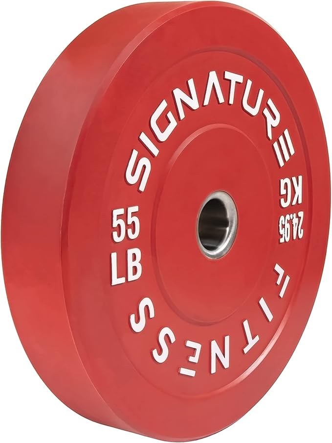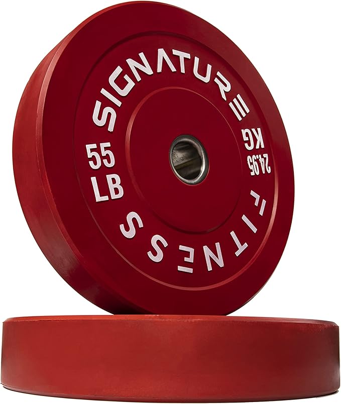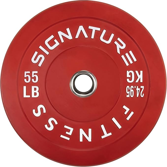 - π 100% VIRGIN RUBBER - LOW ODOR AND BOUNCE π - Signature Fitness Bumper Plates contain NO recycled rubber. This means low to no odor, guaranteed durability, and low "dead" bounce for safety.