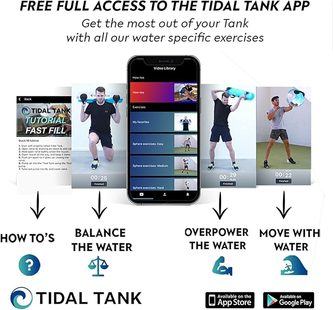 - ONLY WITH THE TIDAL TANK: EVERYTHING YOU NEED π We are fully focused on the Tidal Tank, and want to give you everything you may need, in one purchase. So we made the Tidal Tank transparent, allowing you to see the water level, and included a handy water level to weight indicator so you can see how many pounds of water to add. Furthermore, you will get FREE APP ACCESS with many exercises for your inspiration. Not satisfied for any reason? RETURN FOR FREE within 30 days.