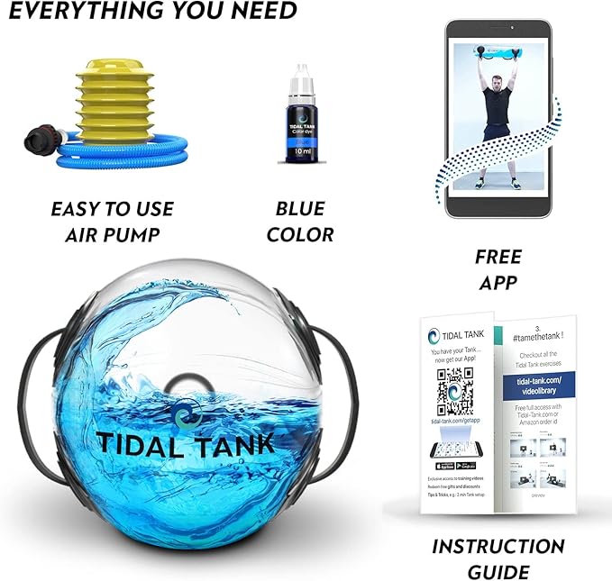 - ONLY WITH THE TIDAL TANK: EVERYTHING YOU NEED π We are fully focused on the Tidal Tank, and want to give you everything you may need, in one purchase. So we made the Tidal Tank transparent, allowing you to see the water level, and included a handy water level to weight indicator so you can see how many pounds of water to add. Furthermore, you will get FREE APP ACCESS with many exercises for your inspiration. Not satisfied for any reason? RETURN FOR FREE within 30 days.