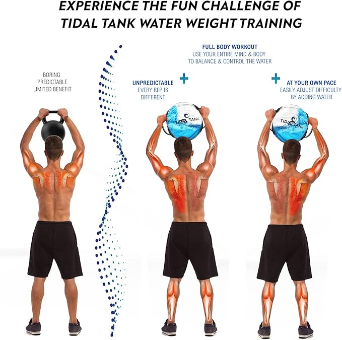 - GET THE ULTIMATE FULL BODY WORKOUT THROUGH INSTABILITY π Pick up the Tidal Tank Sphere and you immediately feel its unforgiving properties. The entire weight of the water sloshing from one side to the other in response to the smallest tilt. In order to raise it above your head, even the smallest muscles are activated, working together with the bigger muscles to maintain balance and power. Because of this, even 20 pounds of water can humble trained athletes.