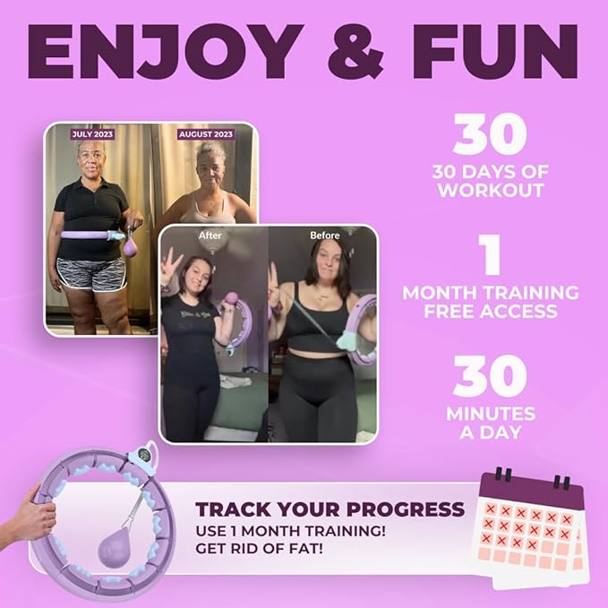 - šŖ 2IN1 HULA HOOP WORKOUT - Hula hoop massage nodes help you burn calories and focus on your problem area. An effective weight loss workout from an activity at home.