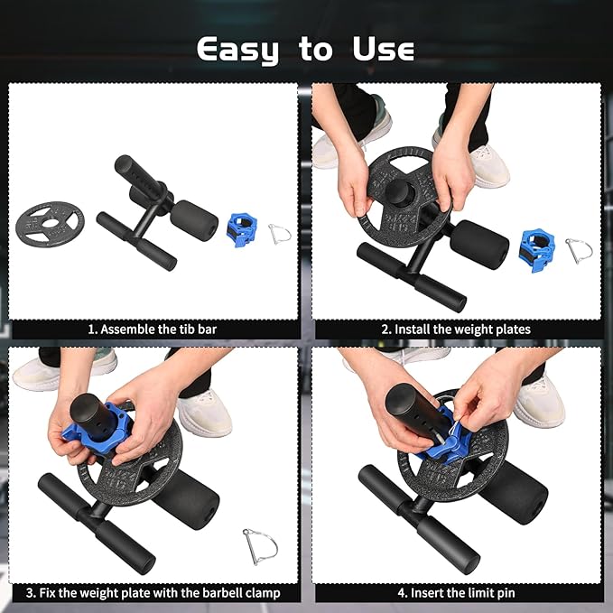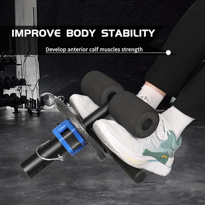 - Easy to Use: The tibialis bar is equipped with a barbell collar, which can easily secure the 2-inch Olympic board. Before practicing, make sure to push the weight plate upwards onto the collar and secure it tightly with locking clips before starting the exercise.